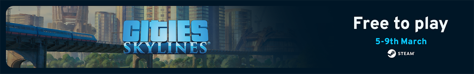 Cities: Skylines is Free to Play!For a limited time, Cities: Skylines is free to play for the whole weekend! Whether you’ve been watching from the sidelines or meant to revisit your grandest metropolis, this is the perfect moment to step into the mayor’s office.Design road networks with flair, shape districts with personality, and watch your citizens go about their daily routines. Every decision matters. A single intersection can smooth traffic across the map or bring the whole city to a standstill.With eleven years of community creativity behind it, Cities: Skylines offers a city-building sandbox shaped by players who turned simple grids into living worlds. Now it’s your turn to lay the first road and see where it leads.