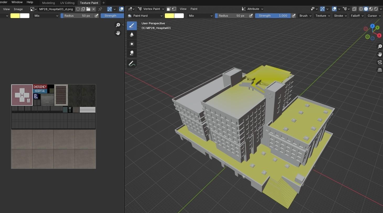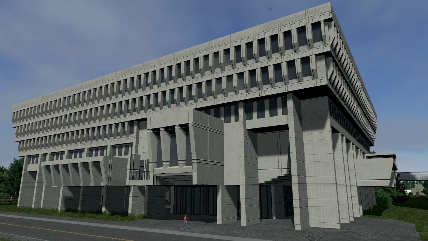 DevelopmentWhen I suggested this pack, some of my goals were both to design striking architecture and to preserve buildings that had been demolished. For example, the Brutalist Clover Building draws inspiration from the Prentice Women’s Hospital, a famous Chicago brutalist building demolished in 2014. The college asset is based on Farish Hall, which is scheduled for demolition in Houston in 2025. My interest in brutalist architecture comes from its bold, raw concrete aesthetic. I chose Brutalism because it stands out and tells a story. Whether you see it as beautiful or intimidating, it makes you feel something.To gain inspiration for my project, I began by exploring examples of brutalist architecture around Houston so I could experience them firsthand. I went to the Alley Theatre in downtown Houston and Farish Hall at the University of Houston and took some photos that would eventually be used as textures for some of the buildings.