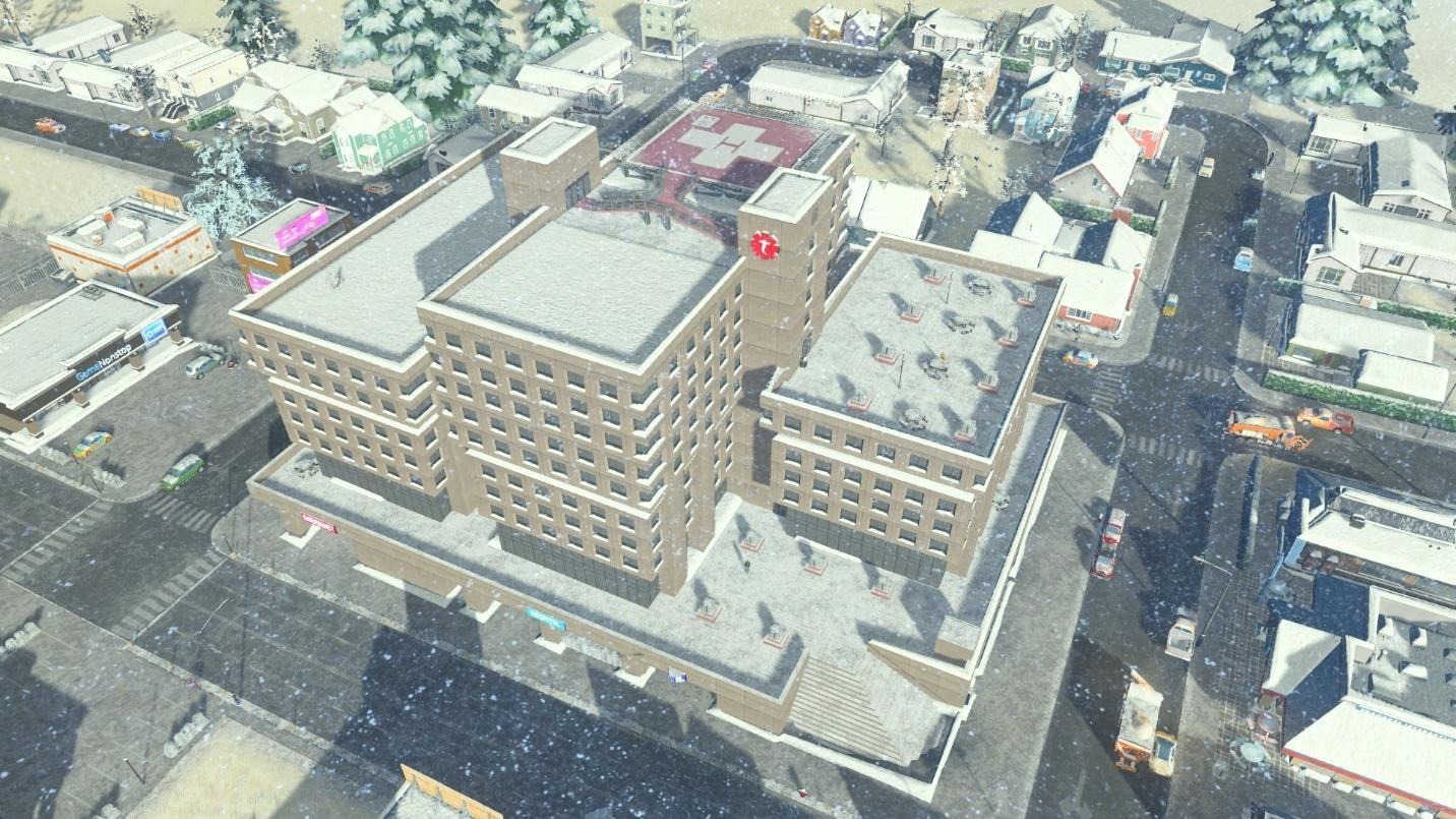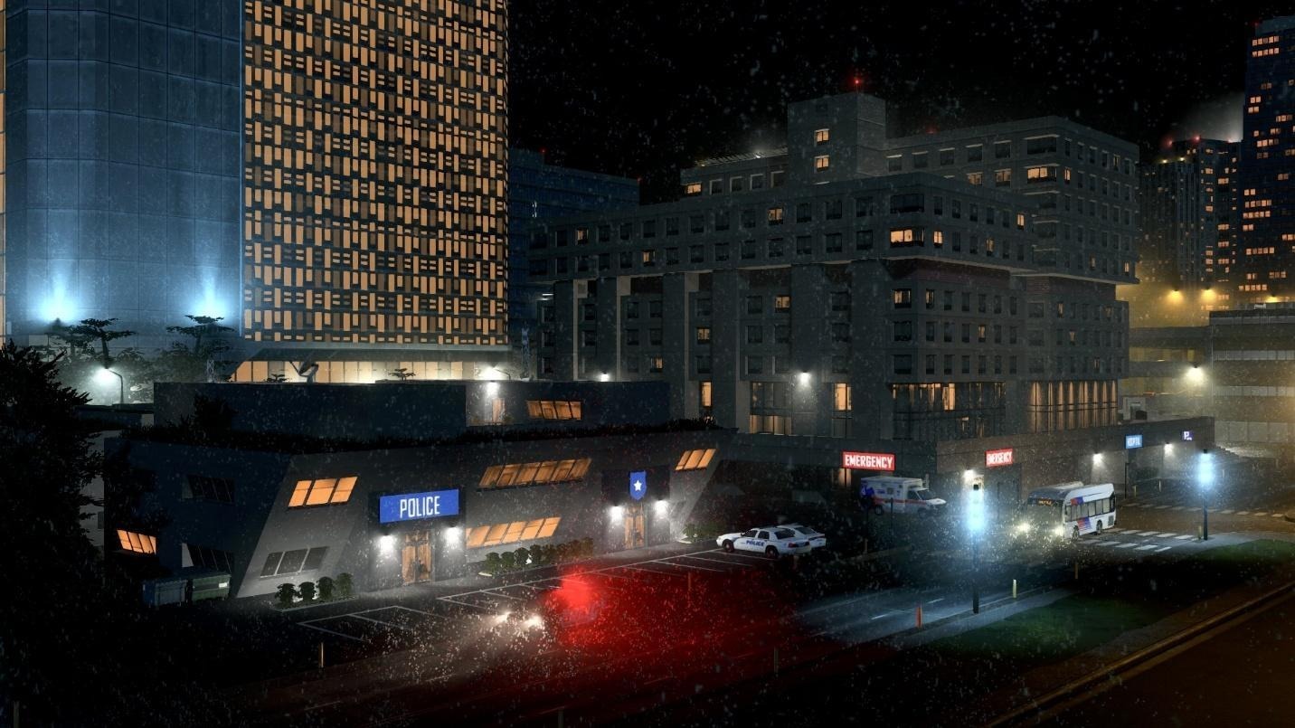 Example of the six texture maps for the Police HQ in the picture above. At the top, the diffuse texture (_d) is edited in Photoshop and tested multiple times on the 3D model. Later, it is also tested in the game editor, along with the other texture maps: alpha (_a), color (_c), illumination (_i), normal (_n), and specular (_s).GAME EDITORImporting the mesh and textures into the Cities: Skylines editor allows previewing the asset in-game, across all variations — map types, snow, day, and night. But that doesn’t mean the process is finished. Based on what the editor shows, textures are further refined in Photoshop and re-imported into the game as many times as necessary to achieve a perfect balance of color saturation, reflections, and nighttime lighting.