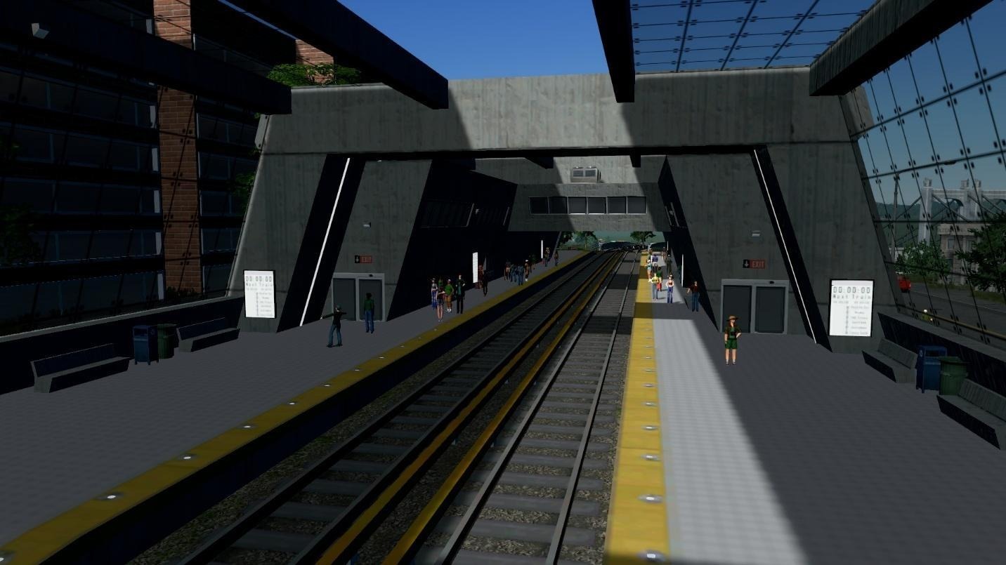 Ground metro station with platform lights inspired by the Washington Metro.Green Brutalism played a significant role in shaping the distinctiveness of most of this pack. This architectural approach, also referred to as eco-brutalism, integrates greenery with the characteristic concrete elements of brutalist design. Mixing plants with buildings makes them nicer and more inviting for people to visit or live/work in.